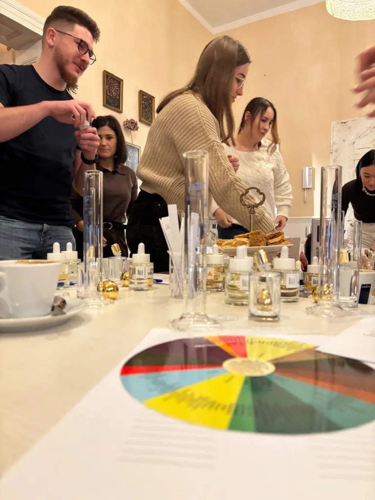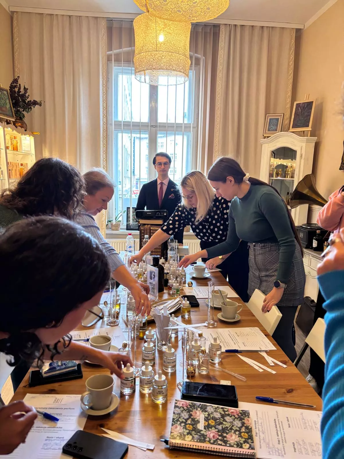 Poznasz podstawowe pojęcia i nuty zapachowe. Naszym celem jest przybliżenie świata perfum w sposób profesjonalny, a jednocześnie dostępny dla każdego. Kilka godzin spędzonych w perfumeryjnym atelier to zanurzenie w świecie aromatów, które pobudzają zmysły i pozwalają stworzyć osobistą interpretację zapachu. Pod okiem doświadczonego prowadzącego poznajesz surowce zapachowe i uczysz się świadomie dobierać nuty, które najlepiej oddają Twój charakter. Nasze warsztaty łączą praktyczną pracę z esencjami z podstawami historii i kultury perfumiarstwa, dając pełniejsze zrozumienie sztuki tworzenia zapachów.
